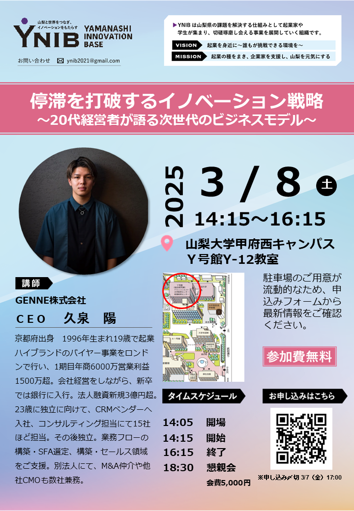 | 講師 | GENNE株式会社 CEO 久泉 陽 氏 |