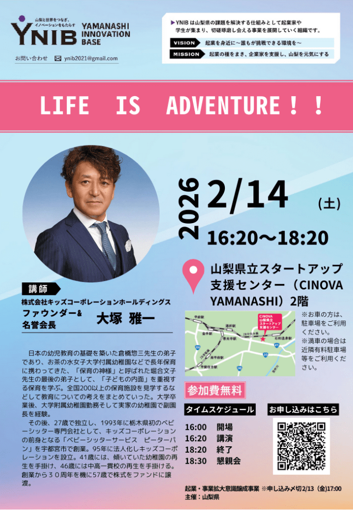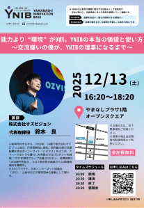 | 会場 | 山梨県立スタートアップ支援センター(CINOVA YAMANASHI)2階 |
